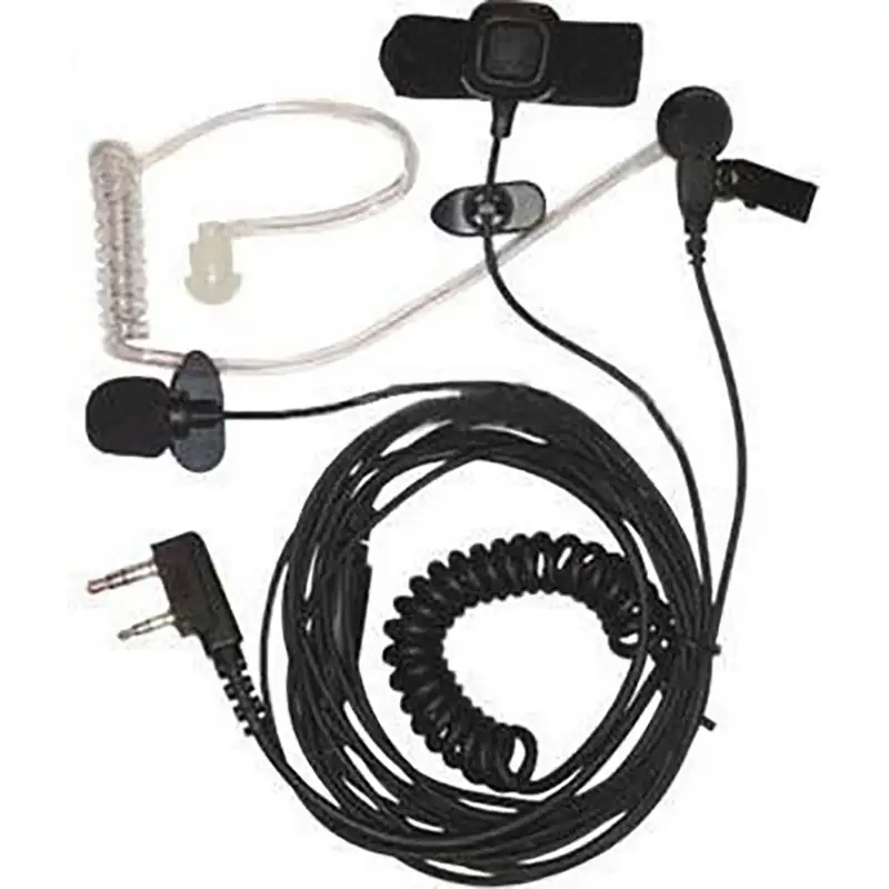 Трёхпроводная гарнитура Ajetrays EMP-808 представляет собой конструкцию из трёх отдельный функциональных проводов для размещения на теле для максимальной скрытности ношения. На первом проводе расположен прозрачный звуковод на металлической прищепке, крепящийся в области воротника, на втором - микрофон с полимерной прищепкой, на третьей - выносная кнопка PTT на палец с липучкой "Velcro", также снабжённая прищепкой для крепления на одежде.