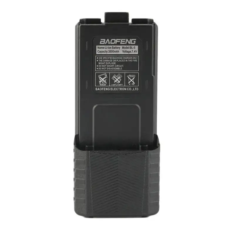 Аккумулятор Baofeng BL-5L с емкостью 2500 мАч и рабочим напряжением 7,4 В — это надежный источник питания для радиостанций Baofeng UV-5R, DM-5R Plus и совместимых моделей. Изготовлен по литий-ионной технологии, аккумулятор обеспечивает продолжительное время работы без эффекта памяти и быстрое восстановление заряда. Его конструкция подходит для легкой установки и надежной фиксации в корпусе рации, сохраняя компактность и удобство носки.