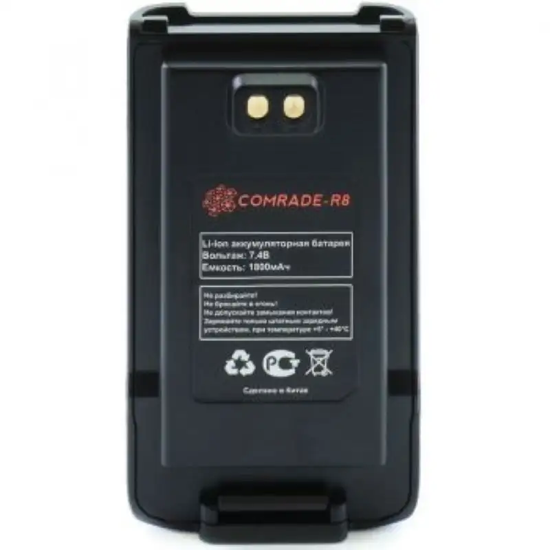Данный аккумулятор имеет 1800 мАч емкости и предназначен для портативных раций Comrade R8.