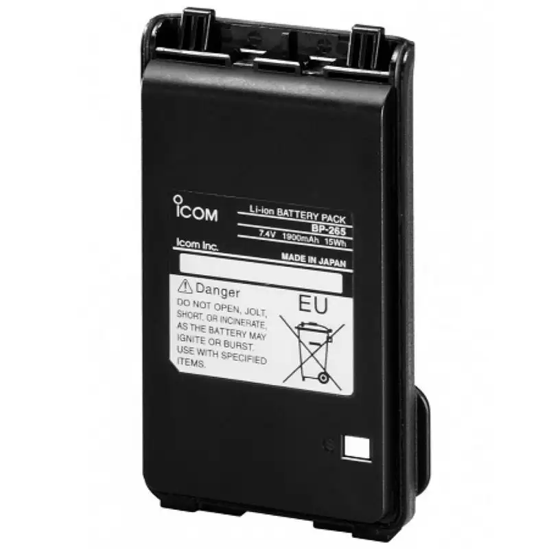 Icom BP-265 обеспечивает до 15 часов автономной работы в цикле 5-5-90, с компактными размерами 59×92×20 мм, весом около 130 г и диапазоном температур -10..+60°C без эффекта памяти. Идеален для профессионального использования в полевых условиях с быстрой зарядкой в стаканах BC-166/BC-174, гарантируя до 400 циклов для надежности в любительских или коммерческих VHF-трансиверах. Прочная IPX7-защита минимизирует риски в экстремальных условиях.