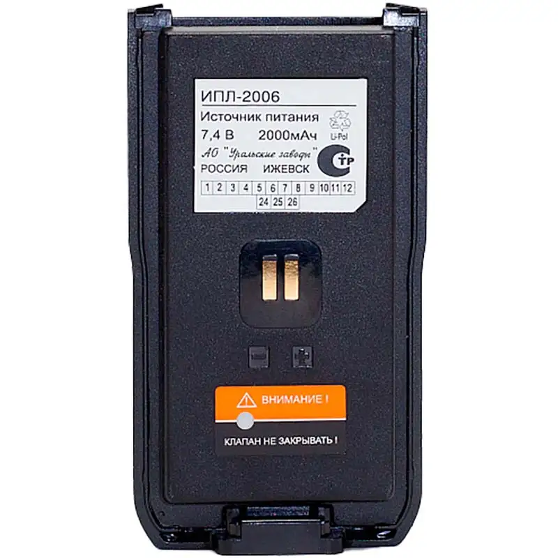 Аккумулятор ИПЛ-2006 для радиостанции Р-360 — базовый Li-Ion источник питания на 7,4 В с ёмкостью 2000 мАч, рассчитанный на 16–20 часов работы в смешанном цикле при мощности 5 Вт на частотах 136–174 МГц. Компактный блок массой всего 130 г защелкивается в рацию без инструментов, выдерживая 500 циклов зарядки, вибрации, падения и температуры от -30°C до +60°C без потери характеристик. Идеален для повседневных смен операторов на объектах, где нужна надёжная автономия без подзарядки в полевых условиях.
