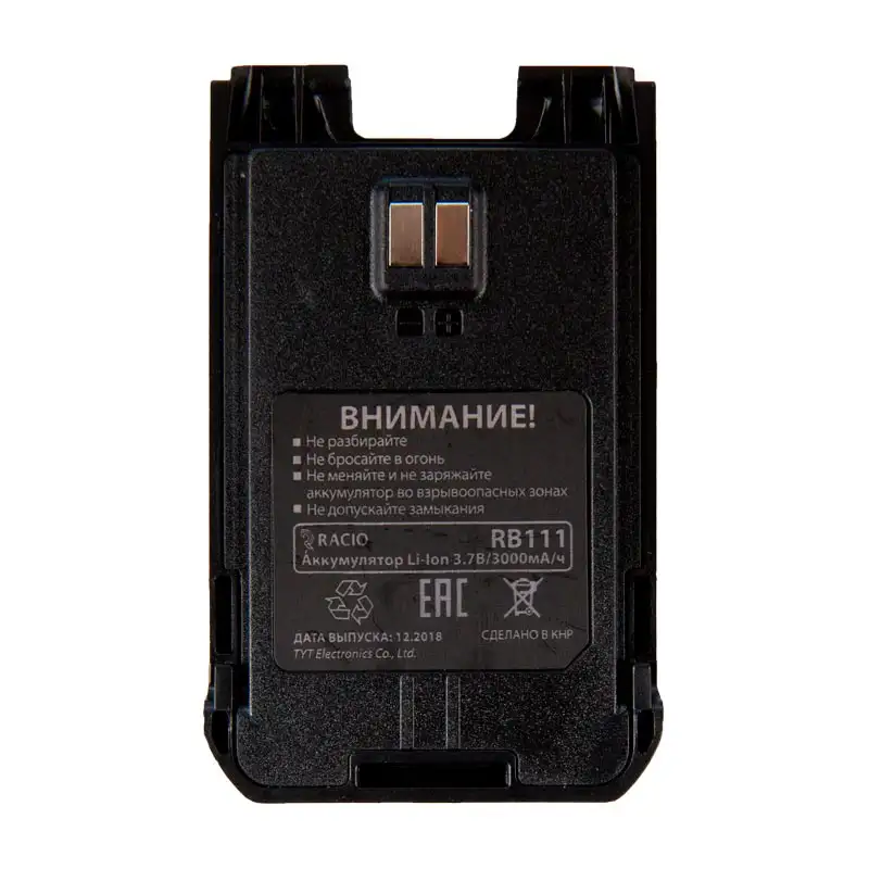 Аккумулятор Racio RB111 обеспечивает радиостанции Racio R110 стабильную работу до 20 часов в стандартном режиме 5% передачи, 5% приема и 90% ожидания благодаря высокой емкости 3000 мАч. Литий-ионная технология на 3,7 В исключает эффект памяти, позволяя дозарядку при любом уровне без деградации емкости или сокращения общего ресурса до 400 циклов.