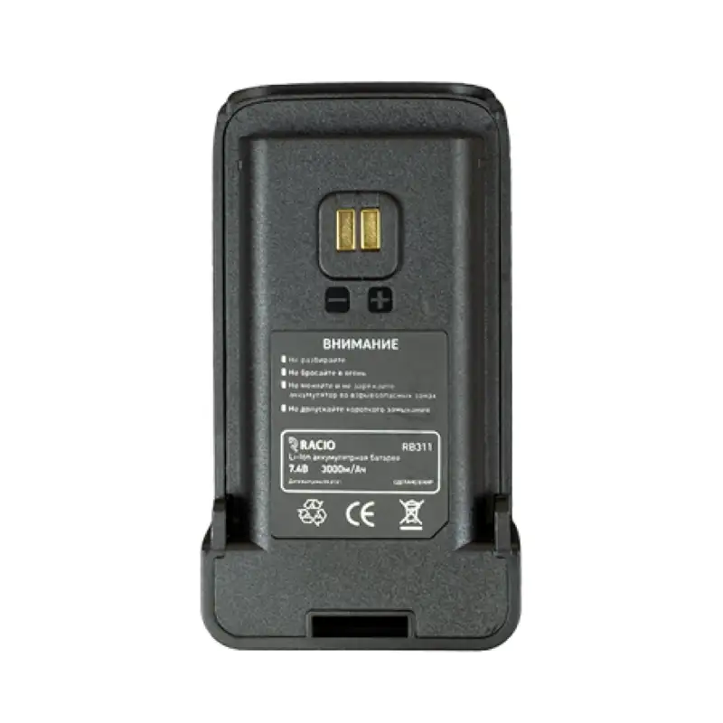 Аккумулятор Racio RB311 служит надежным источником питания для портативной радиостанции Racio R310, обеспечивая емкостью 3000 мАч на напряжении 7,4 В длительную автономию без потери производительности даже при интенсивном использовании. Технология Li-Ion полностью исключает эффект памяти, поэтому дозарядка возможна в любой момент без необходимости полного разряда, что упрощает эксплуатацию и продлевает общий срок службы до 400 циклов заряд-разряд. Прочный корпус защищает внутренние элементы от механических повреждений, ударов и вибраций, типичных для профессиональных условий вроде стройплощадок или складов.