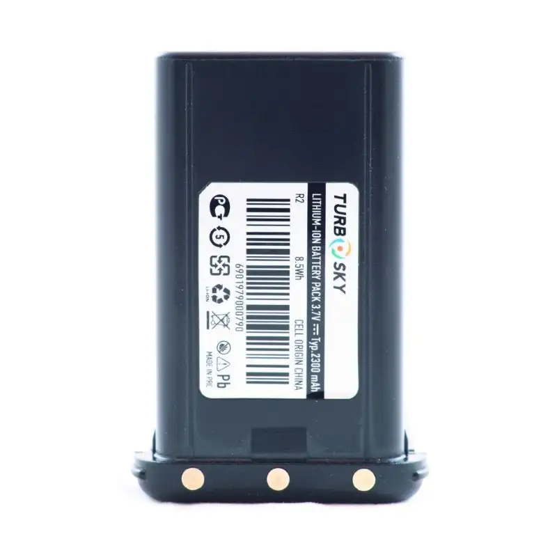 Литий-ионный (Li-ion) акб TurboSky R2 имеет ёмкость 2300 мАч, что обеспечивает длительное время автономной работы радиостанции.