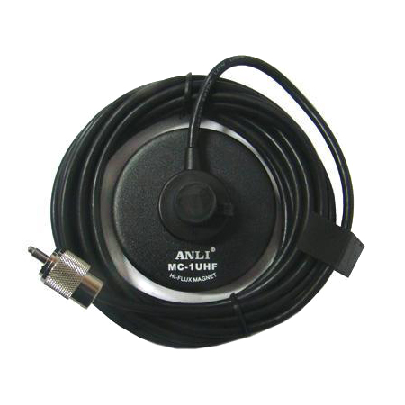 Anli MC-1 UHF — магнитное основание с диаметром 80 мм, предназначенное для крепления антенн с UHF-основанием на металлические поверхности, такие как кузов автомобиля. Магнит обеспечивает прочное сцепление, устойчивость антенны и предотвращает её смещение во время движения.