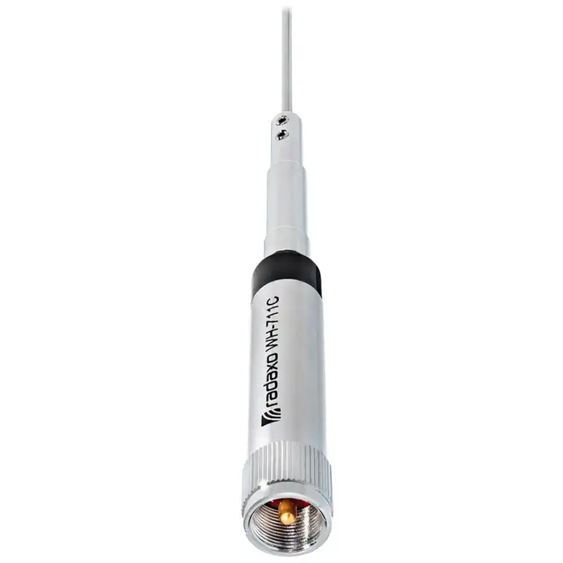 Антенна Radaxo WH-711C предназначена для работы в двух диапазонах VHF и UHF (144 и 430 МГц) с круговой диаграммой направленности и вертикальной поляризацией. Усиление составляет 3.0 dBi для VHF и 5.5 dBi для UHF, что позволяет обеспечить улучшенную дальность и качество связи. Конструкция включает один излучающий элемент длиной 1/2 волны для VHF и два элемента по 5/8 волны для UHF, что оптимизирует характеристики в обоих диапазонах.