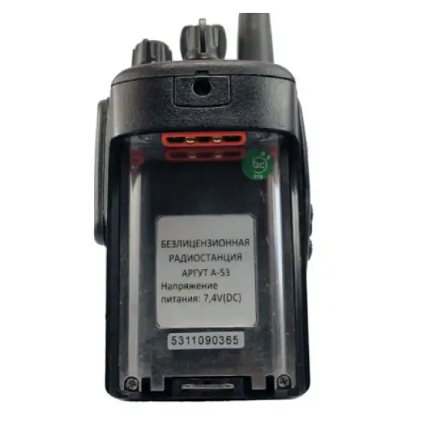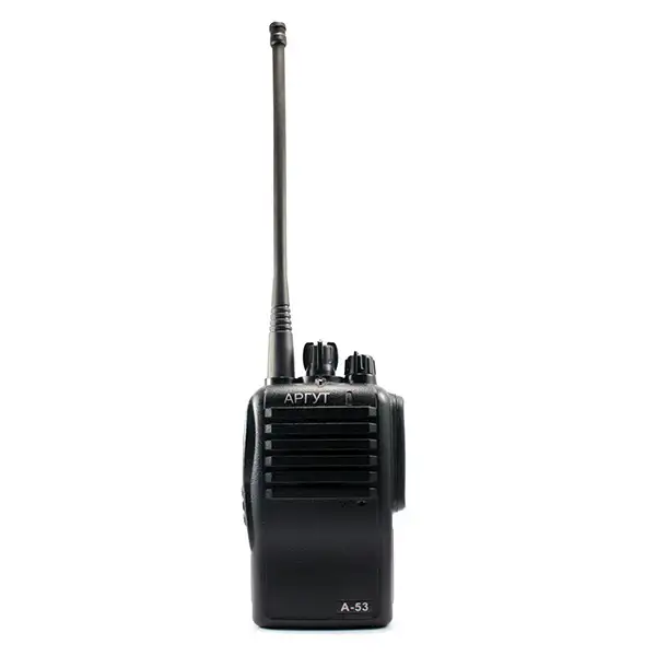 Профессиональная портативная радиостанция Аргут А-53 для работы в диапазоне от 400 до 480 МГц. Возможна установка, с помощью ПК, 16-ти каналов памяти с CTCSS или DCS субтонами.