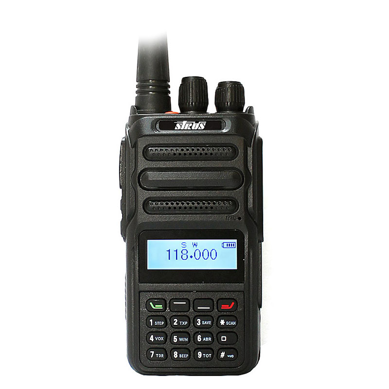 Sirus A14 - это портативная радиостанция авиационного диапазона 118,000 - 135,995 МГц. Авиационная радиостанция имеет мощность до 6 Вт. 400 каналов памяти. Рация имеет приемник типа: супергетеродин. В совокупности с большой мощностью радиостанция позволяет осуществлять радиотрансляцию и прием сигнал на больших расстояниях. Аккумуляторная батарея, емкостью 2100 мАч.
