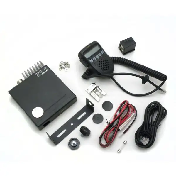 Все органы управления расположены на тангенте ( ЖК-экран, кнопки переключения каналов/шумоподавителя/громкости, функциональные клавиши ). В комплекте присутствует дополнительный кабель для тангенты длиной 2 метра, что в сочетании с компактными размерами, позволяет установить рацию даже в труднодоступные места.