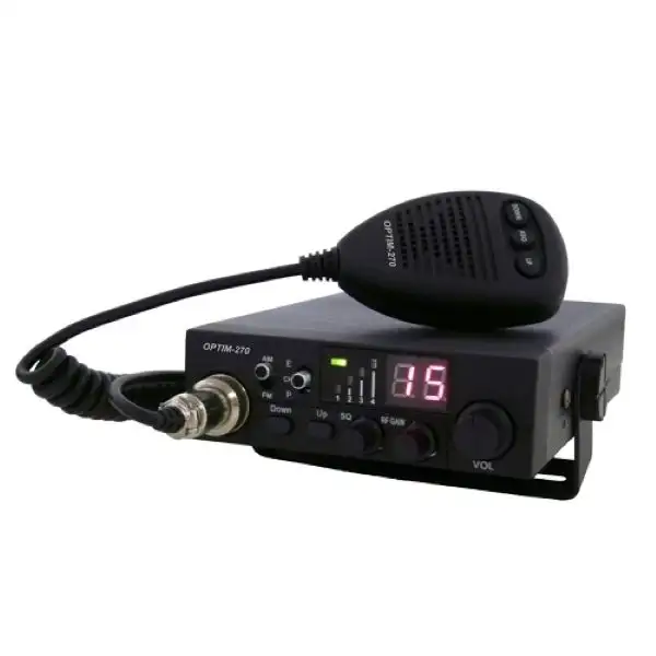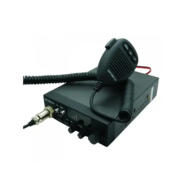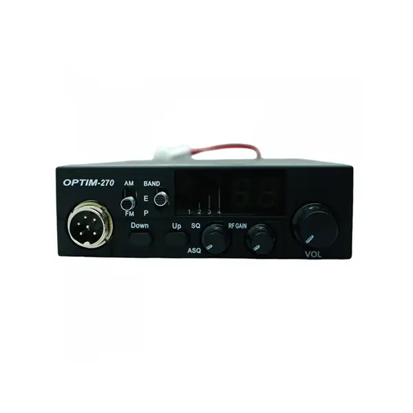 Автомобильная радиостанция Optim-270 для работы и общения в Си-Би диапазоне 25,615 - 28,305 МГц, включая гражданский Си-Би. Отличительными особенностями рации являются максимальная простота и продуманности организации управления, возможность выбора уровня выходной мощности - высокий до 10 Ватт и низкий до 4 Ватт, удобные тактильно ощутимые дискретные органы управления, наличие не только ручного порогового, но и автоматического спектрального шумоподавителя ASQ, возможность работы в "нулях" и "пятёрках".