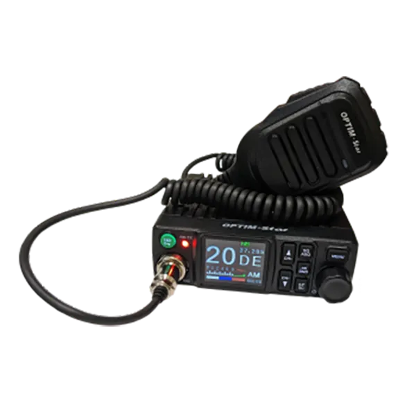 Автомобильная радиостанция Optim-Star - новинка в семействе раций Optim. Радиостанция работает в частотном диапазоне 26965 - 27405 МГц . На передней панели находится разъем для подключения тангенты, кнопка быстрого доступа к 15 каналу, кнопка переключения "Европа/Россия", большой и яркий большой TFT дисплей с индикатором канала на котором находится пользователь, регуляторы спектрального и порогового шумоподавления, кнопки переключения каналов и регулятор громкости, который так же отвечает за включение/выключение рации. Все кнопки и регуляторы имеют яркую подсветку и их без труда можно будет увидеть в темное время суток.