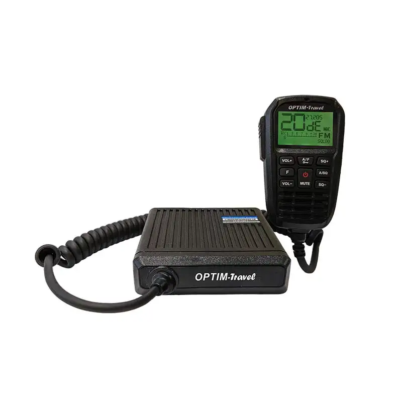 Автомобильная радиостанция OPTIM-Travel - частотный диапазон работы рации 26965 - 27405 МГц. Все управление рацией осуществляется с помощью тангенты. На ней находятся дисплей и кнопки управления. Данная конструкция позволяет скрыть основной модуль рации в любое удобное место ( бардачок, тех. ящик и пр). Мощность радиостанции до 4 Ватт. Большой и яркий дисплей позволит настроить нужную частоту в любое время суток. Имеется кнопка быстрого перехода на 15 канал. Roger Beep ( сигнал окончания передачи) имеет 8 разнообразных вариантов.
