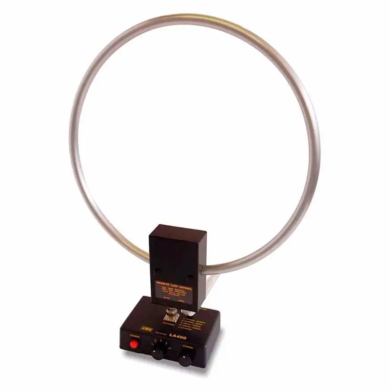 Базовая широкополосная рамочная антенна AOR LA400 с диаметром петли 30,5 см принимает от 10 кГц до 500 МГц с усилением свыше 20 дБ, где направленность в диапазоне 150 кГц – 300 МГц позволяет точно наводить на источник сигнала, отсекая помехи, а на HF и VHF/UHF работает круговой паттерн для стабильного DX или служебки. Активный дизайн с выносным блоком управления и питанием 9–15 В (80 мА) подключается через BNC и RJ-45 кабели до 20 м, чтобы убрать рамку подальше от шумных источников вроде компьютеров или линий электропередач прямо на балконе или в комнате. Компактный размер 305×367×38 мм при весе 1,2 кг упрощает установку без мачты, идеально для городских условий, где габаритные антенны не влезут, а чистый прием жучков, маяков или НЧ-радиостанций нужен без компромиссов.