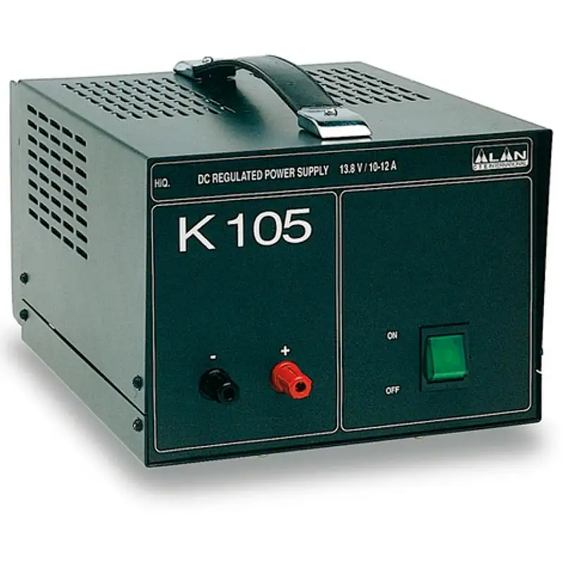 Стабилизированный источник питания К 105 — универсальное устройство для питания СиБи-трансиверов, отличающееся простотой использования: достаточно подключить сетевую вилку в розетку, подсоединить радиостанцию к клеммам с соблюдением полярности и нажать клавишу включения. Перед подключением убедитесь, что мощность нагрузки не превышает номинальную мощность блока. Характеристики: входное напряжение 220 В 50 Гц, выходное — постоянное 13.8 В с номинальным током 10 А (кратковременно 12 А). Габариты — 150×200×292 мм, вес — 6.8 кг. Надёжное решение для стабильного электропитания радиооборудования.