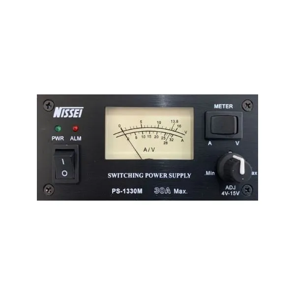 Блок питания Nissei PS-1330M представляет собой высококачественный импульсный источник питания с регулируемым выходным напряжением от 4 до 15 В и током нагрузки до 30 А, что обеспечивает стабильную работу мощных радиоустройств и электроприборов. Устройство оснащено аналоговым стрелочным вольт-амперметром с подсветкой, который позволяет пользователю контролировать напряжение и ток в режиме реального времени и легко переключаться между ними.
