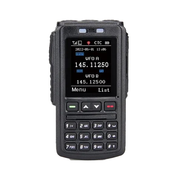 Микрофон оснащен цветным дисплеем 2.2 дюйма и полноценной клавиатурой, обеспечивая полный доступ к меню и функциям базовой станции: выбору каналов, настройке частот в режиме VFO, управлению зонами, громкостью и шумоподавлением.