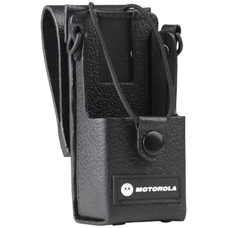 Motorola RLN5385 — прочный кожаный чехол с широкой 3-дюймовой петлей на шарнире, удобный для ношения радиостанций Motorola серий CP040, CP140, CP160, CP180 и DP1400. Клипса на шарнире обеспечивает комфортное и надежное крепление на ремне, позволяя быстро снимать радиостанцию при необходимости. Изготовлен из жесткой кожи, обеспечивающей долговечность и защиту устройства от царапин и ударов. Чехол дополнительно оснащён боковыми кольцами для крепления страховочного шнурка. Черный цвет и классический дизайн делают его универсальным аксессуаром для профессионального использования.