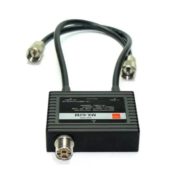 Устройство Diamond MX62M служит дуплексером, который разделяет и комбинирует сигналы КВ и УКВ трансиверов, позволяя использовать всего один коаксиальный кабель для подключения двух различных антенн или двух входов трансивера к единственной антенне. Его широкий диапазон частот охватывает HF от 1,6 до 56 МГц и VHF/UHF от 76 до 470 МГц, с возможностью приёма сигнала до 1200 МГц. Устройство оборудовано разъемами PL-259 и включено в комплект кабелем 5D-2VS для удобства подключения. Низкие потери и высокая развязка улучшают качество связи в сложных условиях использования.