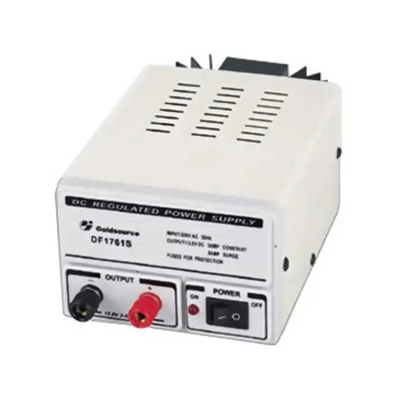 Goldsource DF1761S — трансформаторный стабилизированный блок питания с выходным напряжением 13.8 В и выходным током 3 А номинальным, 5 А максимальным. Устройство предназначено для питания радиостанций, пультов дистанционного управления (например, DRC-500) и другой радиотехнической аппаратуры.