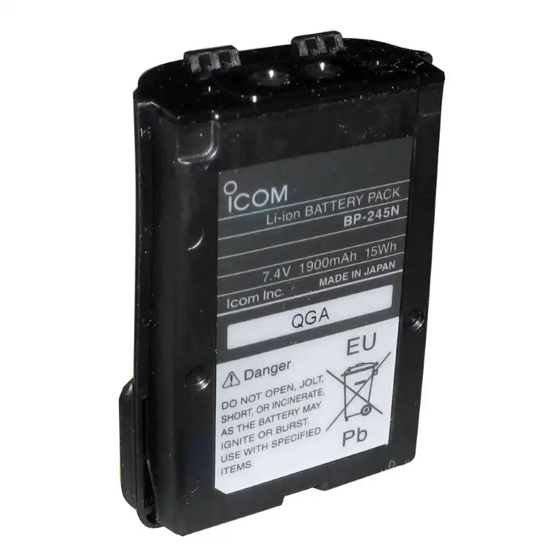 Icom BP-245N обеспечивает до 15 часов автономной работы в цикле 5-5-90, с размерами 98×59×22 мм, весом около 160 г и диапазоном -10..+50°C без эффекта памяти. Идеален для профессионального морского использования с быстрой зарядкой в стаканах BC-174E/BC-166, гарантируя до 400 циклов для надежности в спасательных операциях или на судах. Прочная конструкция минимизирует риски в экстремальных условиях.
