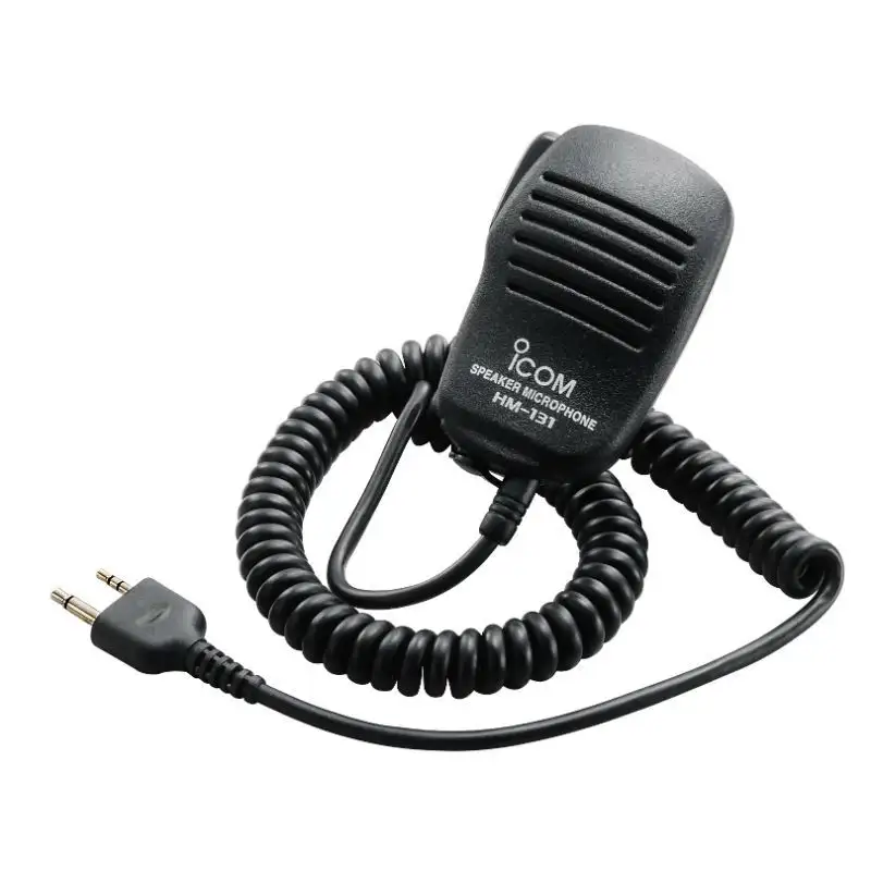 Выносная тангента Icom HM-131 представляет собой компактный спикер-микрофон для портативных радиостанций серий IC-F3/F4 с угловой вилкой прямого подключения, обеспечивая управление PTT и воспроизведение аудио через встроенный динамик мощностью 200 мВт при 4 Ом. Динамический микрофон с чувствительностью -38 дБ передаёт сигнал без дополнительного усиления, эргономичный корпус позволяет крепление на ремень или воротник. Кабель длиной 90 см минимизирует запутывание, габариты 50×85×20 мм, вес 80 г, совместима с IC-4088/IC-F16/F26/F29/F3003/F4003, диапазон температур -20..+60°C.