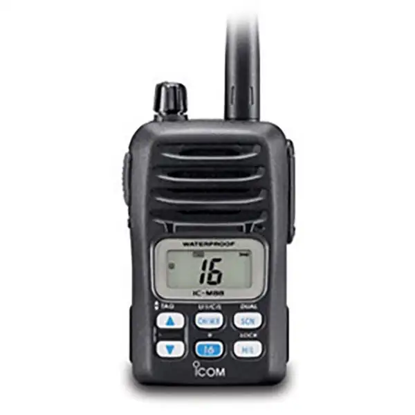 Icom IC-M88 - это портативная морская радиостанция диапазона 156-163 МГц и 146-174 МГц. Вот краткий список её характеристик: мощность передатчика до 5 Вт, дисплей с подсветкой, защита по стандарту IPX7 и MIL-STD 810 F, 22 канала VHF доступные для программирования и аккумулятор Li-Ion на 1700 мАч.