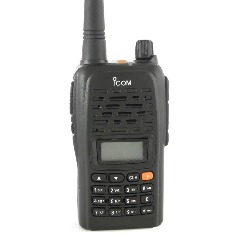 Портативная радиостанция Icom IC-V87 VHF работает в диапазоне 136-174 МГц с выходной мощностью 5/1 Вт и 199 каналами памяти при шаге сетки 5/10/12.5/20/25/30/50 кГц, обеспечивая супергетеродинный прием с чувствительностью 0.2 мкВ (12 дБ SINAD) и селективностью 70 дБ. Поддерживает CTCSS/DCS коды, VOX (9 уровней), сканирование каналов с TOT и BCL, FM-приемник, питание от Li-Ion аккумулятора 7.4 В/1300 мАч (до 15 ч работы), соответствует MIL-STD-810F по ударопрочности и IP54 по влагозащите. Габариты 59×115×35.5 мм, вес 190 г с аккумулятором и антенной, диапазон температур -20..+55°C.
