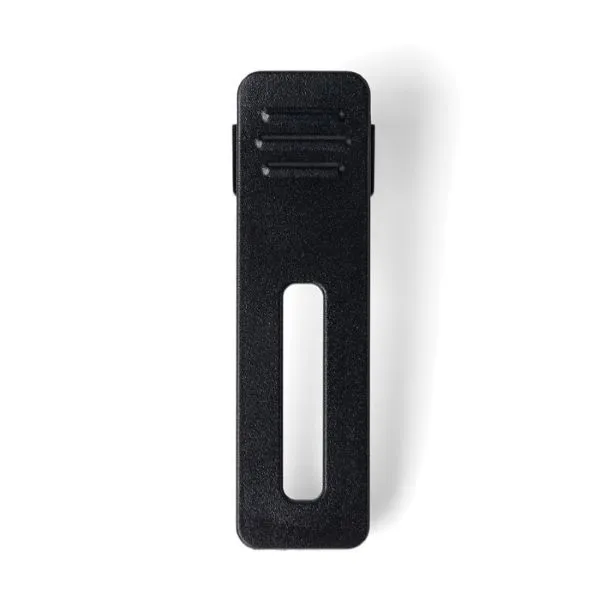 Особенностью конструкции является надежный подпружиненный механизм, который обеспечивает плотное сцепление и надежную фиксацию устройства даже при активном движении. Поверхность клипсы имеет шершавую текстуру, что предотвращает скольжение и случайное смещение рации во время работы в самых различных условиях — будь то длительное ношение, активное передвижение или работа на улице. Загнутый край дополнительно усиливает удержание клипсы, позволяя надежно закрепить её на ремне разной толщины, не повреждая ткань и не создавая дискомфорта. Материал клипсы — износостойкий пластик, сочетающий легкость и прочность, что обеспечивает длительный срок службы без деформаций и поломок. Эргономичный дизайн и оптимальная форма делают процесс крепления и снятия рации быстрым и простым, позволяя оператору не тратить лишнее время и силы при повседневном использовании.