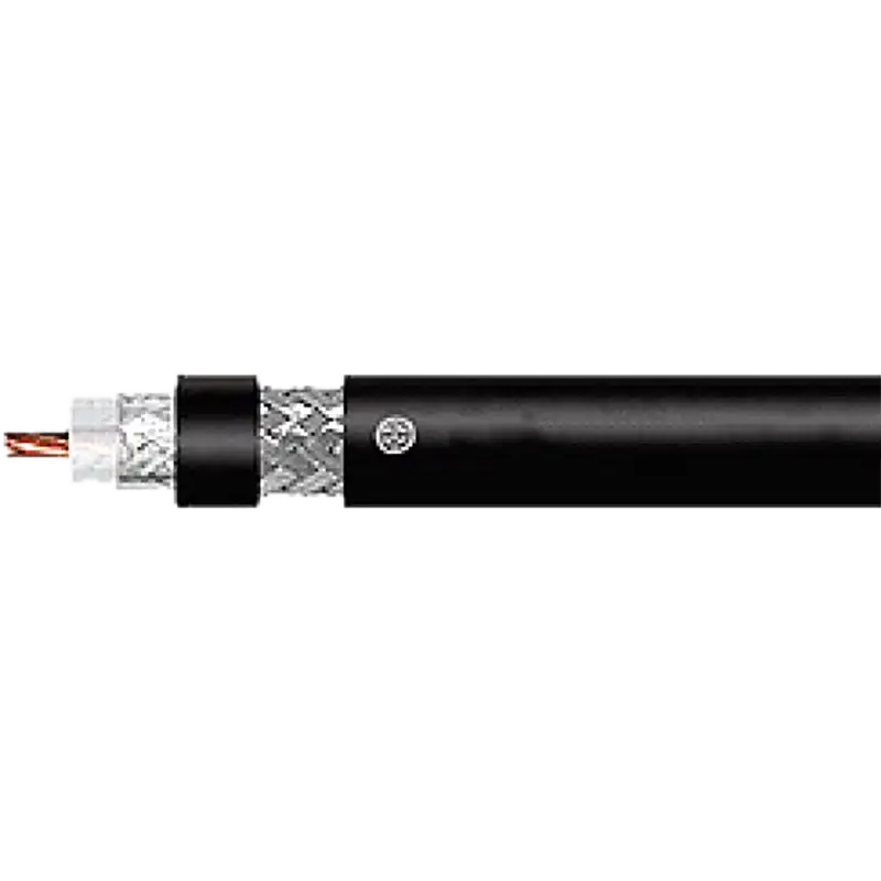 Внешняя оболочка кабеля выполнена из полиэтилена, устойчивого к ультрафиолетовому излучению, что позволяет использовать кабель в уличных условиях без риска быстрой деградации материала. Кабель имеет двойное экранирование: основное — алюминиевая фольга на лавсановой основе с 100% покрытием, и дополнительную оплетку из луженой меди с плотностью 95%, обеспечивая комплексную защиту сигнала от помех.