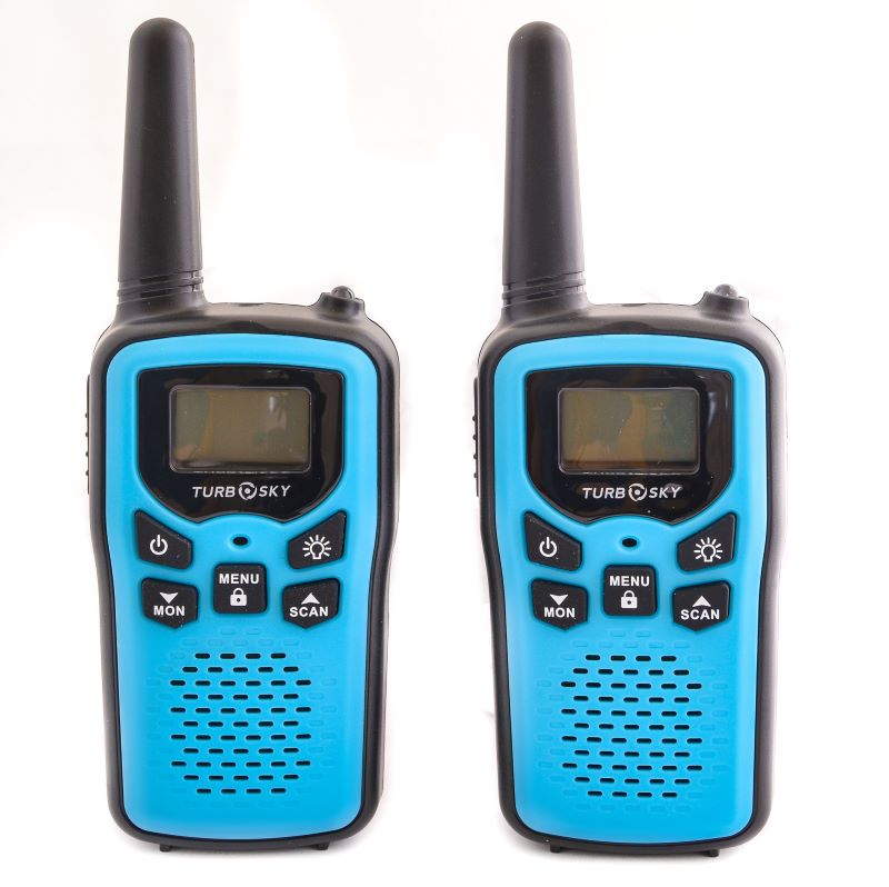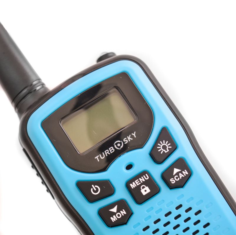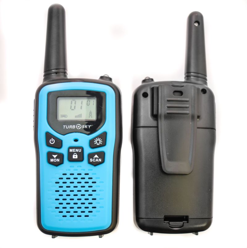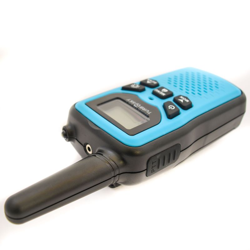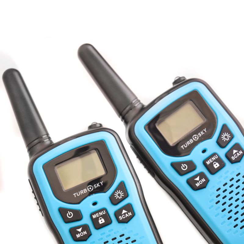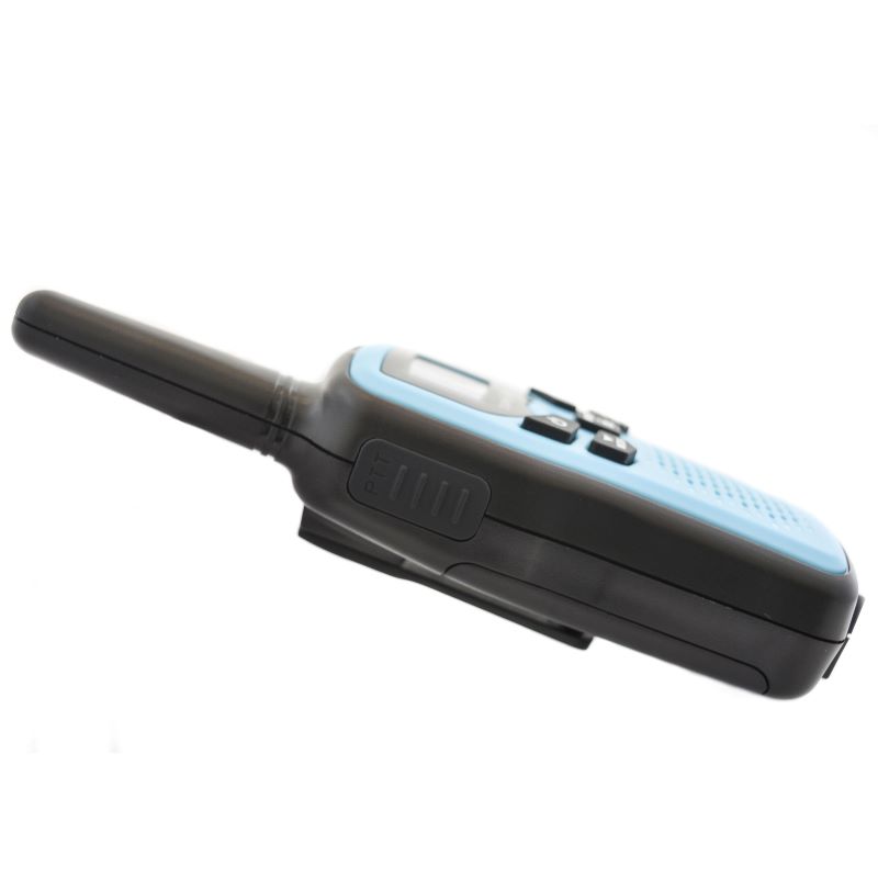 Комплект T25 Blue содержит пару безлицензионных PMR-станций для мгновенного развёртывания связи на дистанции до 5 км в прямой видимости, синтезатор PLL фиксирует 8 каналов с 99 субтонами CTCSS/DCS против перехватов. VOX активирует передачу голосом без кнопок, LCD показывает заряд, уровень сигнала и канал с подсветкой для ночных выходов. Фонарик освещает путь, двухпинный разъём принимает гарнитуры, AAA-батарейки или NiMH обеспечивают 12 часов автономии. Корпус с клипсой выдерживает падения с 1 м, прорезиненная панель защищает от брызг, кнопки мониторинга сканируют эфир без задержек.