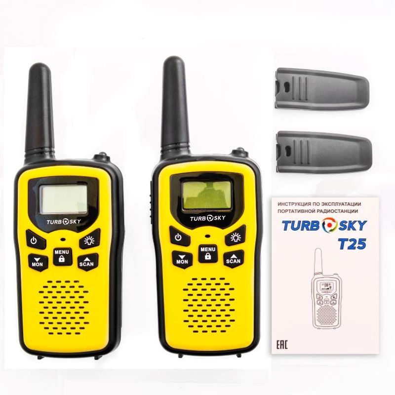 | Комплектация | 2 радиостанции Turbosky T25 + 2 клипсы на ремень + Руководство пользователя + Гарантия | |