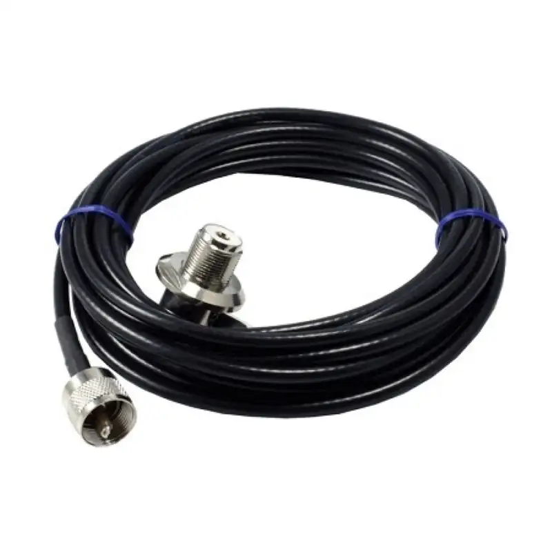 В комплект входит кабель RG-58 A/U длиной 4,5 метра с разъемами PL-259 и угловым SO-239, что значительно упрощает подключение антенны к радиопередатчику и обеспечивает надежность сигнала. Такая конструкция позволяет легко интегрировать антенну в существующую радиосистему без потерь качества передачи.