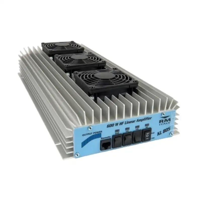 Усилитель RM KL 805 — мощный транзисторный усилитель для коротковолнового диапазона 24-30 МГц, ориентированный на профессиональное и любительское использование. Обеспечивает максимальную выходную мощность до 600 Вт в режимах AM/FM и до 1000 Вт (PEP) в режиме SSB при входной мощности 1-15 Вт.