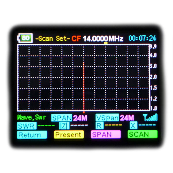 Векторный антенный анализатор KVE60C - универсальное карманное устройство с большими функциональными возможностями в области настройки антенн приёмо-передающей аппаратуры, работающей в частотном диапазоне от 0,5 до 60 МГц и комплексного анализа антенно-фидерного тракта. Прибор отображает на цветном ЖК-дисплее в числовом и графическом виде значения таких параметров, как КСВ, импеданс, активное и реактивное сопротивление в заданной полосе частот.