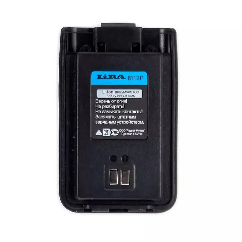 Аккумулятор Lira B-112P для портативной радиостанции Lira P-112L имеет ёмкость 2000 мАч и обеспечивает продолжительное время автономной работы радиостанции.