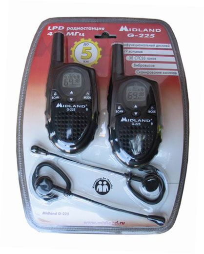 | Комплектация | Две рации Midland G225 в блистере + Гарнитуры с заушиной + Клипсы + Инструкция на русском языке + Гарантия | |