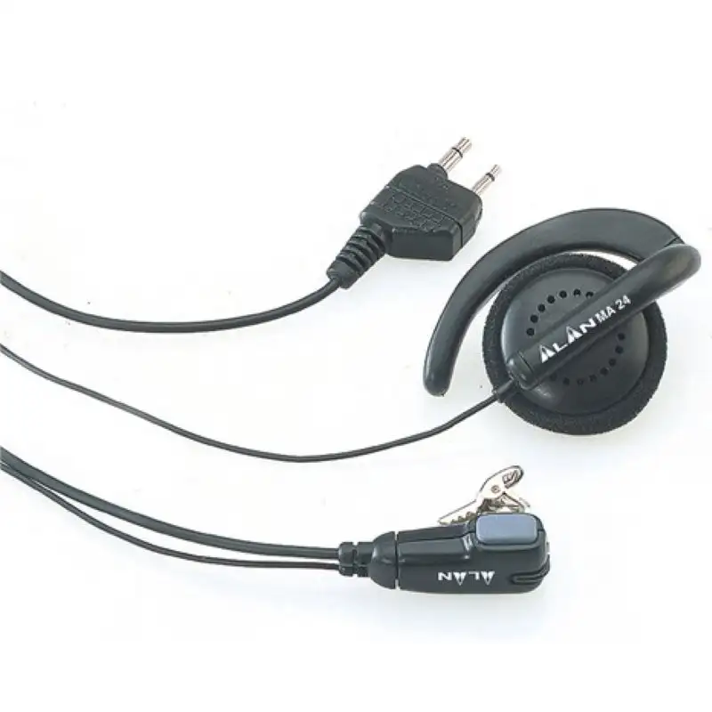 Проводная гарнитура Midland MA-24 для мобильных радиостанций с креплением динамика на ухо. Микрофон снабжён прищепкой и крепится на воротнике, также вместе с микрофоном расположена клавиша "PTT".