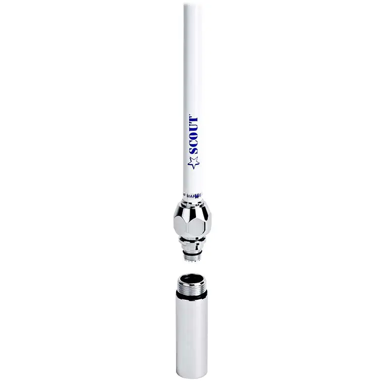 Scout KS-50 — современная морская УКВ-антенна длиной 1,5 метра, идеально подходящая для моторных лодок и яхт. Она оснащена прочным стекловолоконным корпусом с анти-УФ покрытием, защищающим от пожелтения и выцветания при длительной эксплуатации. Особенностью модели является система SCOUT Fast Fit с разъемом PL-female, позволяющая быстро снять антенну без риска попадания воды внутрь. Усиление 3 дБ и частотный диапазон 156-162 МГц обеспечивают надежную и стабильную связь в морских условиях. Крепление резьбовое 1"x14 и разъем SO-239 гарантируют удобство монтажа и совместимость с большинством радиостанций. Антенна также оснащена заземлением по постоянному току, что повышает ее эксплуатационную надежность.