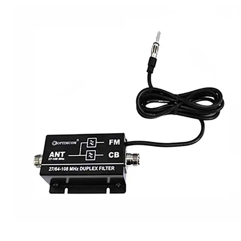 Уникальная автомобильная антенна Optim CB-FM способна одновременно работать на двух диапазонах: с классической радиостанцией Си-Би 27 МГц и с автомагнитолой для приёма радиовещательных станций 88-108 МГц (FM-радио). Данная возможность достигается за счёт использования входящего в комплект дуплексного фильтра (дуплексёра), подключаемого между антенной, радиостанцией и магнитолой.