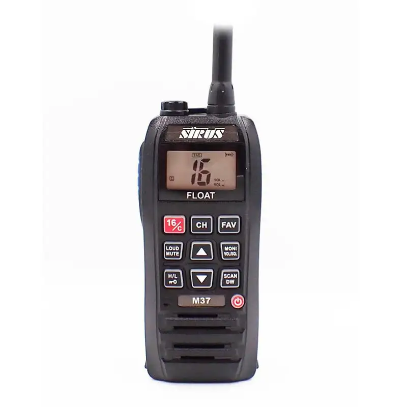 Sirus M37 — портативная морская радиостанция УКВ-диапазона. Sirus М37 обладает мощным передатчиком 6 Вт и классическое схемотехническое решение по аналоговой супергетеродинной технологии. Работает на частотах 156-163 МГц. Эта водонепроницаемая морская радиостанция может находиться под водой в течение 30 минут при глубине до одного метра. Sirus M37 защищена от влаги по классу IPХ7.