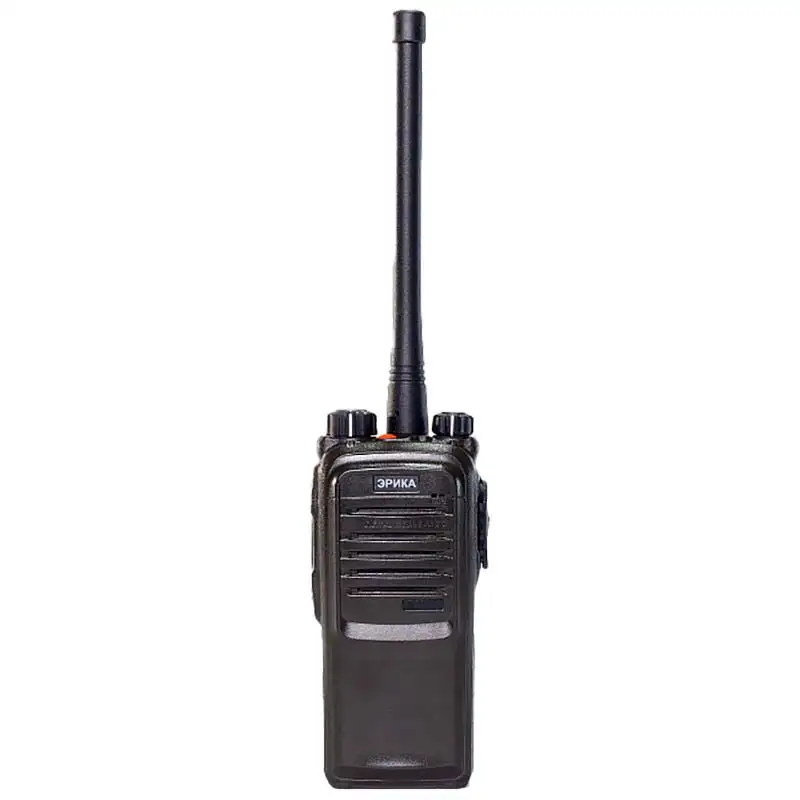 Портативная радиостанция Эрика-360 UHF — сверхпрочная ручная модель на частотах 400–470 МГц с мощностью 4 Вт и Li-Ion АКБ 2000 мАч, обеспечивающая до 13 часов цифрового DMR-режима или 10 часов аналогового, пробивая стены ангаров, складские помехи или плотный городской эфир на заводах, терминалах и охранных периметрах. Корпус IP67 весом 330 г размером 137x65x41мм с клипсой выдерживает погружение на метр, падения по MIL-STD-810 и температуры от -30°C до +60°C, организуя 1024 канала по 64 зонам для приватных, групповых вызовов, сканирования и тревожных сигналов с чувствительностью 0,3 мкВ без шумов в экстремальных условиях. Она поддерживает VOX-гарнитуру и псевдотранкинг, позволяя бригадам координироваться весь день без подзарядки на производстве, в логистике или спасательных операциях.