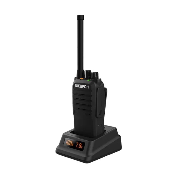 Портативная радиостанция Шеврон T-54 V2 работает в VHF-диапазоне 136-174 МГц с мощностью передатчика 8 Вт, которую можно регулировать для оптимальной дальности до 10 км, сохраняя заряд аккумулятора Li-Pol 3100 мАч на 48 часов интенсивной эксплуатации. FM-модуляция обеспечивает совместимость с аналоговыми системами, а поддержка DMR Tier II добавляет цифровую эффективность; чувствительность приема 0,25 мкВ с SINAD 12 дБ и 256 каналов памяти позволяют уверенно работать в загруженном эфире.