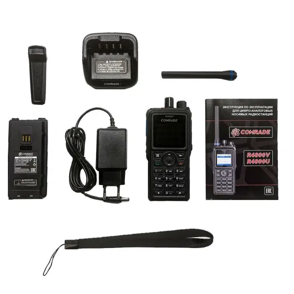 | Комплектация | Портативная рация Comrade R4800 DMR UHF + Аккумулятор Li-ion 2000мАч + Зарядное устройство + Сетевой адаптер + Антенна + Клипса (зажим на пояс) + Винты крепления клипсы + Ремешок на руку + Инструкция по эксплуатации + Гарантия | |