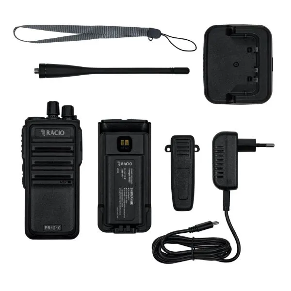Racio PR1210 выделяется среди UHF-раций балансом мощности 5 Вт и экономии энергии, обеспечивая стабильный контакт на средних дистанциях без избыточного расхода заряда от Li-Ion аккумулятора 3300 мАч, который держит до 20 часов в цикле 5% передача/5% прием/90% standby при температурах от -20 до +60 °C и весе всего 260 г.