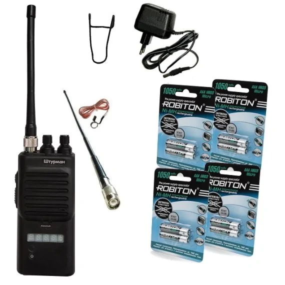 | Комплектация | Радиостанция Штурман-200_3 + Антенна 14 см + Антенна 33 см со съемным противовесом + Поясная клипса + Аккумуляторы Robiton Ready To Use 1050мАч (8 шт. ААА) + Зарядное устройство + Документация + Гарантия | |