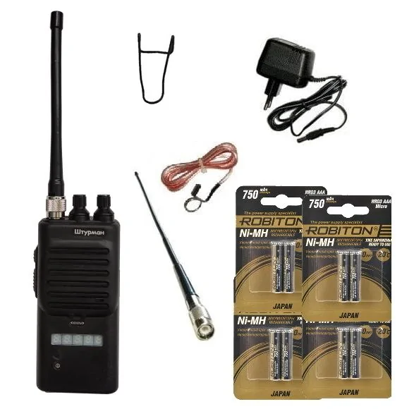 | Комплектация | Радиостанция Штурман-200_9 + Антенна 14 см + Антенна 33 см со съемным противовесом + Поясная клипса + Аккумуляторы Robiton Japan 750мАч (8 шт. ААА) + Зарядное устройство + Документация + Гарантия | |