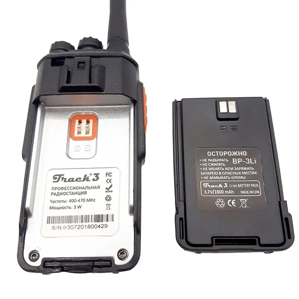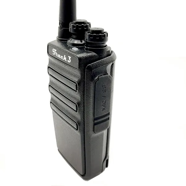 Радиостанция Track-3 предназначена для UHF 400-470 МГц с мощностью 3 Вт и 16 программируемыми каналами шагом 25 кГц, оптимизирована для профессионального использования без дисплея, что повышает ресурс и упрощает интерфейс для охраны, строителей и персонала ТЦ. Габариты 58x120x35 мм и вес 190 г обеспечивают удобство, корпус из ударопрочного пластика работает от -25°C до +60°C.