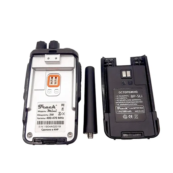 Track mini представляет собой портативное UHF-устройство 420-470 МГц с TX мощностью до 3 Вт (настраиваемая ступенями), 16 каналами для LPD/PMR и других частот, обеспечивая стабильную связь на 5-8 км в зависимости от рельефа и препятствий. Корпус из армированного пластика размером 113x59x34 мм весом 195 г (без батареи) сертифицирован по IP66 для полной защиты от пыли, интенсивного дождя и влаги при рабочих температурах -10/+50°C; антискользящее ребристое покрытие АКБ обеспечивает уверенный хват даже в экстремальных условиях.
