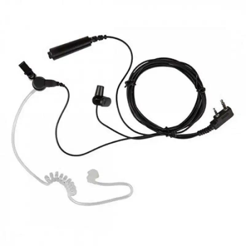 Гарнитура Racio LA-50K представляет трехпроводную конструкцию с разъемом Kenwood 2-pin для любых носимых станций Racio. Прозрачный звуковод обеспечивает невидимость при скрытом использовании, а PTT-кнопка и микрофон разделены по разным жилам для эргономичного доступа в динамике. Зажимы на элементах позволяют закрепить их на лацкане или кармане без рук.
