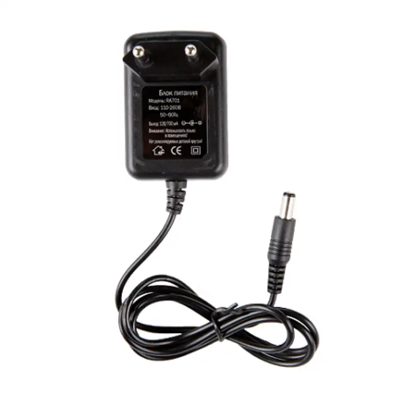Сетевой адаптер Racio RA-701 формирует стабильное выходное напряжение 12.5-13.8 В при токе 700 мА из диапазона 110-260 В для зарядной базы RC 701, совместимой с портативными моделями R700 UHF, R500 и двухдиапазонной R610. Универсальность входа позволяет подключать устройство к сетям разных стандартов, что актуально для экспорта оборудования или работы на объектах с генераторами, где напряжение колеблется.